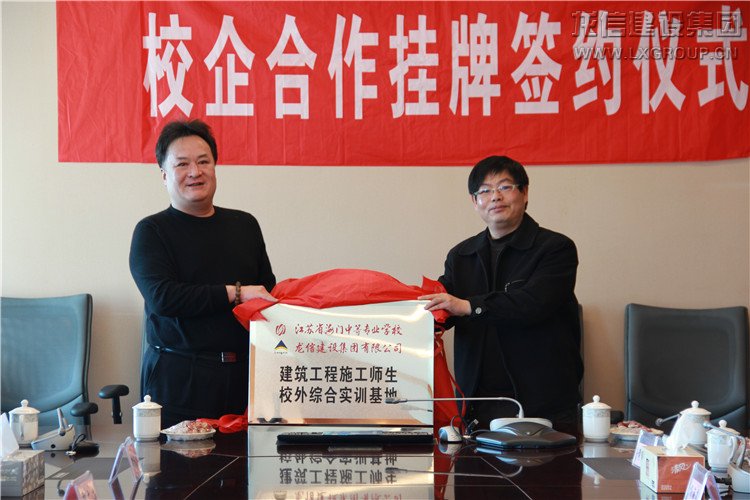 為促進(jìn)校企深度合作,完善校企雙贏機(jī)制,實(shí)現(xiàn)校企協(xié)同發(fā)展, 2015年2月9日下午,在龍信大廈二樓會(huì)議室舉行了龍信集團(tuán)與海門(mén)中專共建師生綜合校外實(shí)訓(xùn)基地的揭牌儀式。海門(mén)中專的陸衛(wèi)平副校長(zhǎng)、郁建菊主任、張慧琴主管、楊海燕老師、黃其中老師,我集團(tuán)總經(jīng)理唐愛(ài)東、監(jiān)事會(huì)主席卞勤華、集團(tuán)常務(wù)副總工程師劉瑛、經(jīng)營(yíng)部經(jīng)理賀廣海、施工技術(shù)部經(jīng)理張豪、人力資源部經(jīng)理黃麗英、人力資源部主管宋斌斌參加了揭牌儀式。