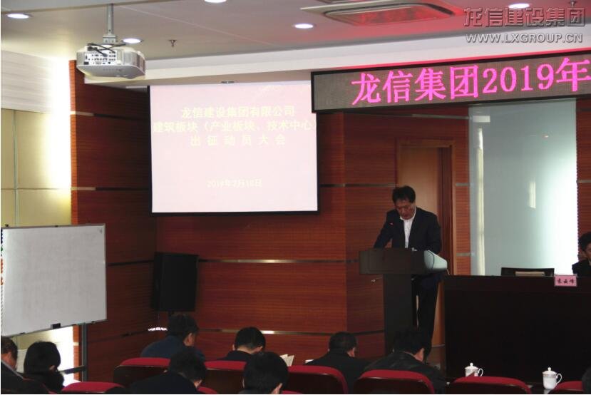 2月18日,龍信集團建筑板塊出征動員會在龍信大廈20樓會議室召開。集團董事、監事、建筑板塊+產業板塊各分子公司負責人、分子公司經營層、分子公司條線及部門負責人、技術中心、華房院負責人、集團總部全體人員等共計170人出席會議。