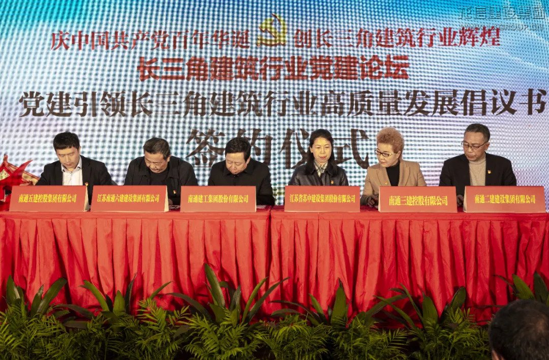 論壇上,長三角建筑行業(yè)黨建論壇揭牌,由安徽省建筑設(shè)計研究總院股份有限公司、沈陽建筑大學(xué)、中天建設(shè)集團(tuán)有限公司、上海海怡建設(shè)(集團(tuán))有限公司、上海華東房產(chǎn)設(shè)計院有限公司、南通三建控股集團(tuán)有限公司、江蘇省蘇中建設(shè)集團(tuán)股份有限公司、南通建工集團(tuán)股份有限公司、江蘇南通六建建設(shè)集團(tuán)有限公司、南通五建控股集團(tuán)有限公司、南通二建建設(shè)集團(tuán)有限公司、龍信建設(shè)集團(tuán)有限公司12家企業(yè)共同聯(lián)合發(fā)起《黨建引領(lǐng)長三角建筑行業(yè)高質(zhì)量發(fā)展倡議書》。《倡議書》指出,長三角一體化的步伐鏗鏘有力、建筑業(yè)轉(zhuǎn)型升級高質(zhì)量發(fā)展的藍(lán)圖已躍然紙上。未來,長三角區(qū)域里的建筑業(yè)企業(yè),將堅持黨建引領(lǐng)企業(yè)發(fā)展,以踏實肯干的“老黃牛”精神、敬業(yè)奉獻(xiàn)的“孺子牛”精神、敢闖敢干的“初生牛犢”精神,朝著高質(zhì)量發(fā)展的目標(biāo)高歌猛進(jìn)、再立新功,打好“十四五”之戰(zhàn)!
