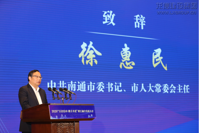 會議現場,徐惠民致辭。他指出,南通主導產業特色鮮明,新興產業同步發展,與蘇錫常產業關聯度高,互補性強,產業鏈的分工協作,融合發展潛力巨大。一個人可以走得很快,一群人才能走得更遠,此次跨江融合發展大會,既為蘇錫常通四座城市架起了基于產業鏈分工的合作之橋,也為企業家朋友搭建了溝通交流的友誼之橋,希望蘇南的各位企業家們,抓住機遇,跨江北上。南通也將以最大的誠意營造最佳的合作環境,讓每一位在南通投資的企業,都能夠獲得最大的便利和支持。