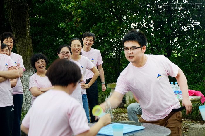 此次培訓圍繞集團企業文化——誠信、務實、創新、高效、共贏展開,教練先通過一系列暖場破冰的活動,放松心情,消除隔閡,建立信任。接著將全體人員分為三個小組——奔跑隊、赤焰隊、顏值爆表隊,先后在七巧板、團隊神筆、水果迷宮、指壓板奔跑、有軌電車、急速潑水等項目上進行了比拼。