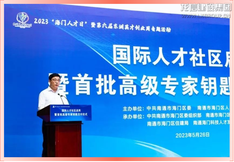 5月26日上午,海門國際人才社區啟用暨首批高級專家鑰匙交付儀式在麓園國際人才公寓舉行。區委常委、組織部部長、統戰部部長楊江華出席活動并致辭,區政府黨組成員、科技鎮長團團長陳騰主持,區政府副區長茅敏勇,區委組織部副部長、編辦主任、老干部局局長王飛,區國資辦主任鄒宇等領導出席活動。