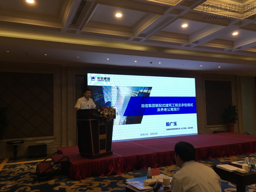 6月14日上午,會議由中國土木工程學(xué)會住宅工程指導(dǎo)工作委員會理事長張軍主持。郭允沖部長致辭并分析了國內(nèi)外裝配式建筑的現(xiàn)狀和未來發(fā)展方向。王華理事長對裝配式建筑的發(fā)展歷程和技術(shù)體系做了深入分析。龍信集團(tuán)總工程師殷廣玉作了題為“龍信集團(tuán)裝配式建筑與養(yǎng)老住宅介紹”的匯報,詳細(xì)介紹了龍信產(chǎn)業(yè)化發(fā)展歷程和技術(shù)優(yōu)勢,并就南通人才公寓項目和海門樂頤薈老年公寓項目為實例講述了龍信集團(tuán)裝配式剪力墻及框架結(jié)構(gòu)設(shè)計、施工的先進(jìn)性并介紹了龍信老年公寓讓老者“養(yǎng)、尊、處、優(yōu)”的社區(qū)養(yǎng)老運營模式。