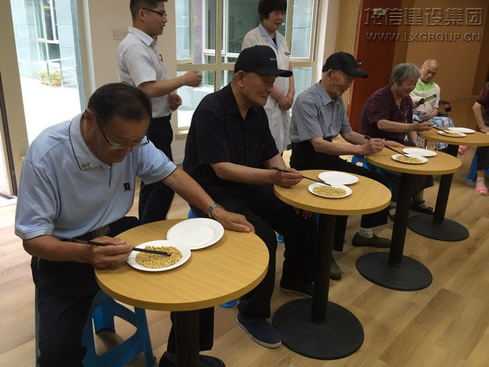 第一個比賽項目是筷子夾黃豆。裁判一聲“開始”,叔叔阿姨們便迅捷地舞動起手中的筷子,全神貫注地為這些豆子“搬家”。大部分的豆子拗不過叔叔阿姨們手中的筷子,乖乖的躺在了紙盤里。當然,也不乏一些調(diào)皮的豆子,趁大家不注意,滑落到地上,引來圍觀長者們的陣陣笑聲。比賽分7輪進行,最后,505室的何阿姨、508室的俞阿姨、809室的趙叔叔、1001室的袁阿姨、1201室的葉阿姨、1209室的張阿姨、1301室的陸阿姨分獲各輪的第一名。