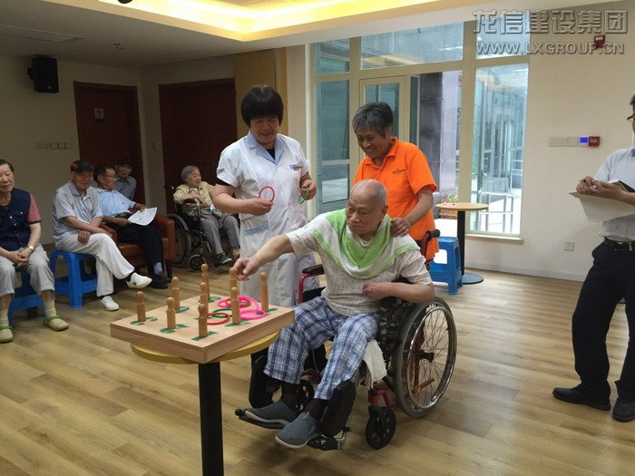 第二個比賽項目是快樂套圈。長者們認真的投擲著手中的套圈,為套中而欣喜,也為落空而遺憾。但是最幸福的事,不是你摘得了桂冠,而是看到你的臉上洋溢出許久未見的笑容。1301室的陳叔叔自中風后身體狀況一直不佳,平時的起居飲食需要保姆的照料,他坐著輪椅來到規(guī)定的比賽投擲線,用自己稍稍顫抖的右手接過套圈,當大家看到這樣的距離對他來說比較困難的時候,參賽的其他叔叔阿姨主動提出要為他縮短距離。在樂頤薈這個大家庭里,每一次活動,規(guī)則不重要,輸贏更不重要,重要的只有這彌足珍貴的鄰里情誼。當陳叔叔投中時,他笑了,這一笑溫暖了在場的所有人。最終,508室的俞阿姨、1101室的施叔叔、1301室的陸阿姨奪得了前三甲。