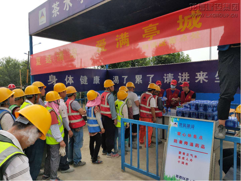 活動現場為項目一線工作者發放了礦泉水、藿香正氣水、風油精等防暑降溫用品,并在項目現場設立“愛心休息站”,張貼夏季防暑降溫小貼士,加強建筑工地夏季安全生產意識,配備防暑降溫藥品,為項目一線工作者提供安全保障。