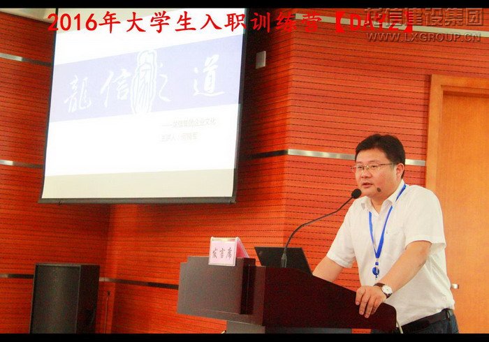 7月13日,龍信建設集團董事長兼黨委書記陳祖新、工會主席卞勤華、董事會秘書兼副總裁何曉軍、安全設備部經理施金浩、人力資源部副經理宋斌斌、人力資源部顧問黃麗英、十六分公司工程部經理張周強出席訓練營第二天的培訓,并就企業發展及文化、公司人事制度、入職流程辦理、職稱取證知識、施工安全知識、建造師培養、黨組織關系轉移和入黨須知等做專題培訓課程。