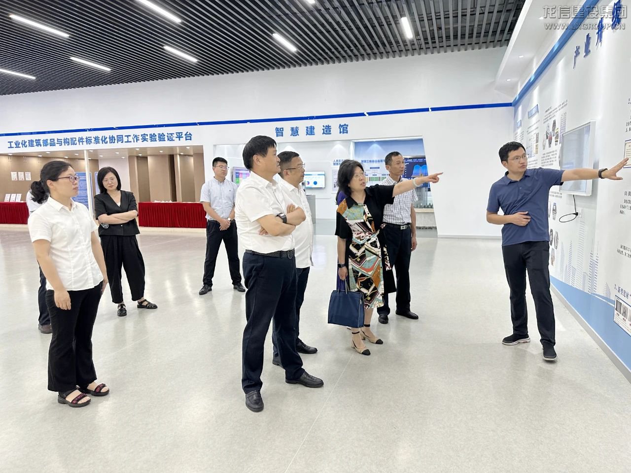 張姿部長一行在陳祖新董事長等人的陪同下參觀龍信館、產改館、數字監控中心,詳盡了解集團65年發展歷程、建筑產業化及產業工人隊伍建設、信息化應用等情況。