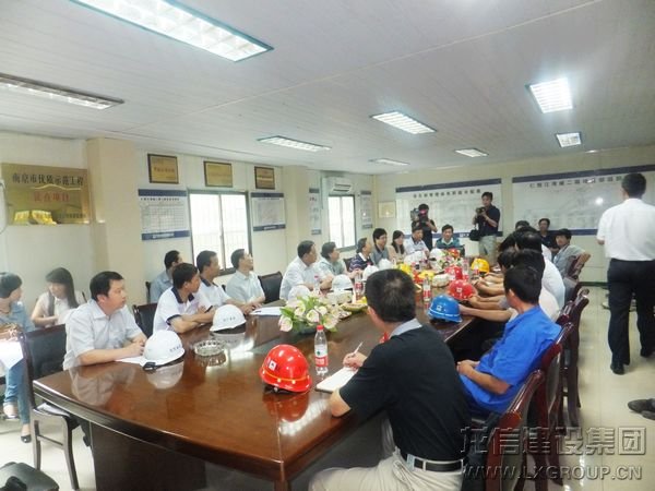 六部位領導一行在慰問了施工一線的農民工,親切地與他們握手后,贈送藥箱、毛巾等生活用品,發放南京市市民生活手冊,宣傳《南京市建筑業施工作業人員實名制管理辦法》,指導農民工正確使用南京市民卡讓其全面了解市民卡的功能作用,為更好更廣泛的普及市民卡鋪路。仁恒江灣城二期項目經理費永新向六部委領導介紹龍信建設集團的發展情況,匯報了仁恒江灣城二期的施工進度、南京市市民卡落實使用、保障農民工“安居樂業”的措施、夏季施工防暑降溫、防洪防汛等情況,領導們聽取匯報后強調,在保質保量完成江灣城二期項目工程為南京市及青奧會做貢獻的同時,要關注關心每位農民工的身心健康,確保農民工的生命財產安全,保證他們生活在良好的環境中。