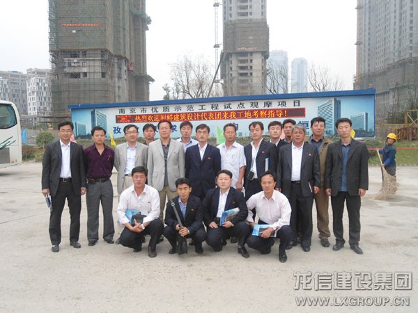 朝鮮代表團帶隊朝鮮駐中國大使館參贊鄭賢宇介紹了代表團的情況及此行目的,項目經理費永新代表江灣城二期項目對客人的到來表示歡迎,詳細介紹了龍信集團的發(fā)展情況,及江灣城二期項目質量控制和安全文明的實施落實情況,隨后,費經理及安全主管帶領代表團參觀工地,代表團認真聆聽費經理的講解,并不斷詢問各節(jié)點的具體做法及新技術新工藝的運用情況。