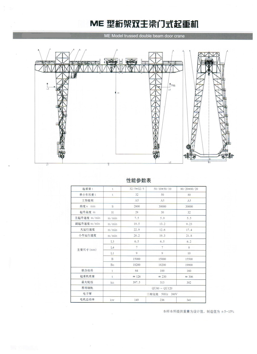 ME型桁架雙主梁門式起重機(jī)